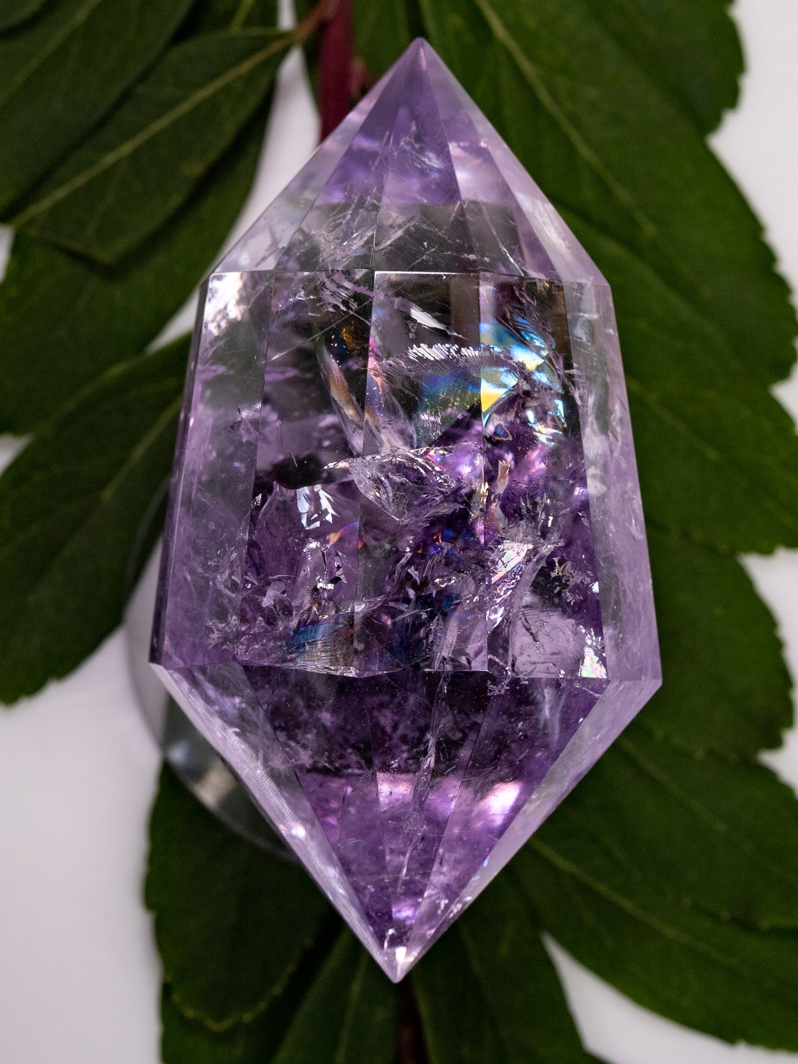 This Brazilian Amethyst wand has been expertly shaped into a 12-sided, double terminated form that highlights its saturated purple color and striking internal light play.