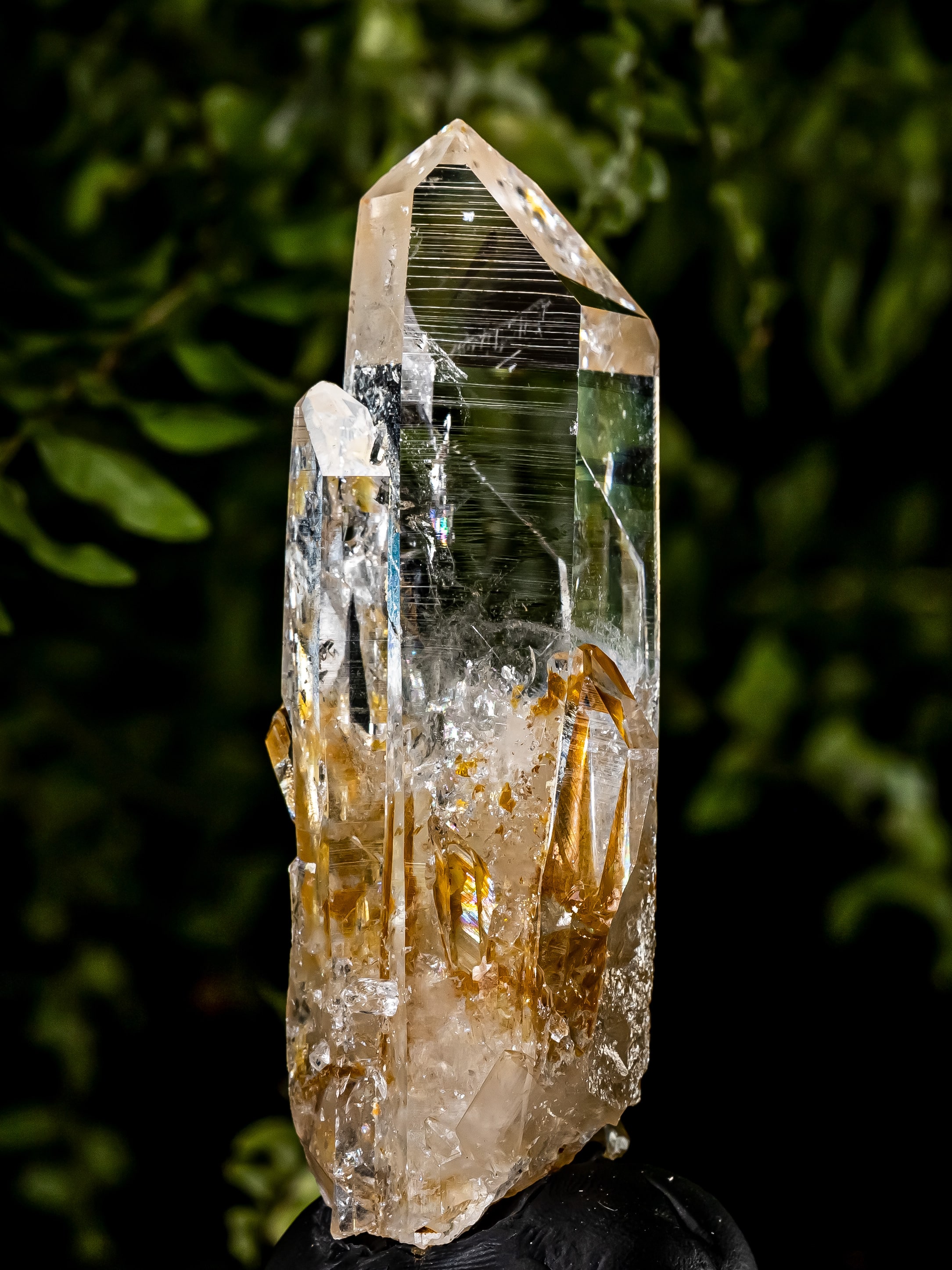 Although Quartz is durable, Colombian Quartz often features exceptionally fine terminations and surface detail. Lift from the base and avoid pressure on points or striated faces.