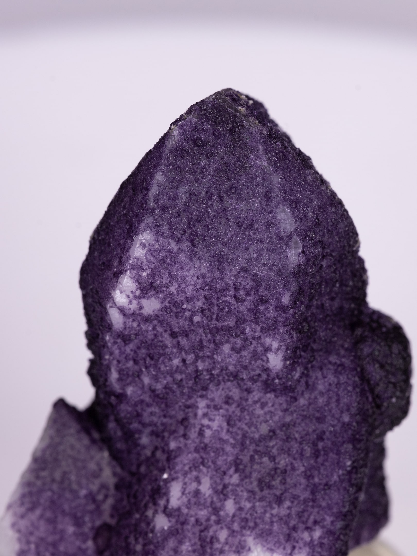 Like all Fluorite varieties, Purple Fluorite forms most commonly in hydrothermal vein systems, often alongside Quartz, Calcite, Barite, and metallic sulfides. Fluorite’s relatively low hardness allows for well-defined crystal faces and smooth polished forms, but also results in perfect cleavage along four directions.