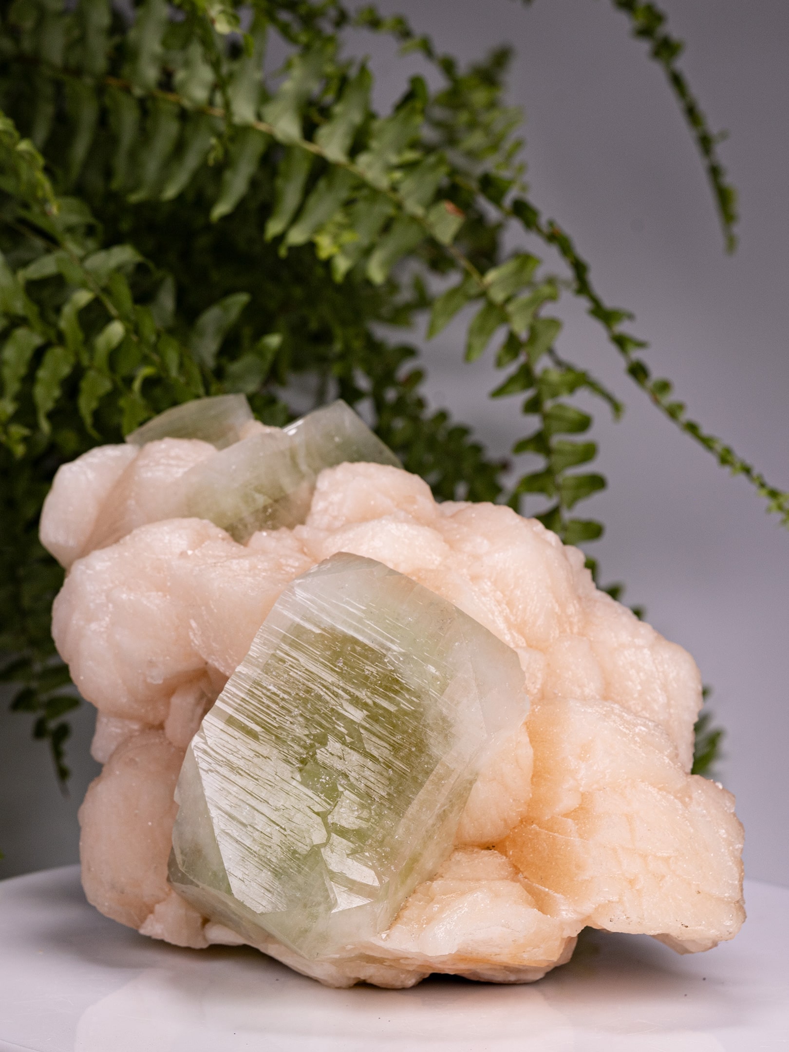 The name Apophyllite comes from the Greek words apo (away) and phyllon (leaf), referring to the mineral’s tendency to flake or exfoliate when heated — a property noted by early mineralogists.
