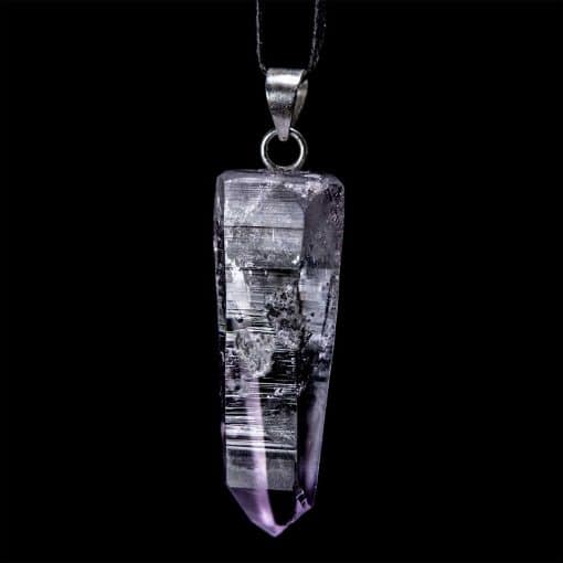 This all Natural Vera Cruz Amethyst Pendant has great clarity and color. The hook and bail are made out of sterling silver. This pendant comes with an adjustable waxed nylon cord – however a Sterling Silver chain may be added at the shopping cart itself.