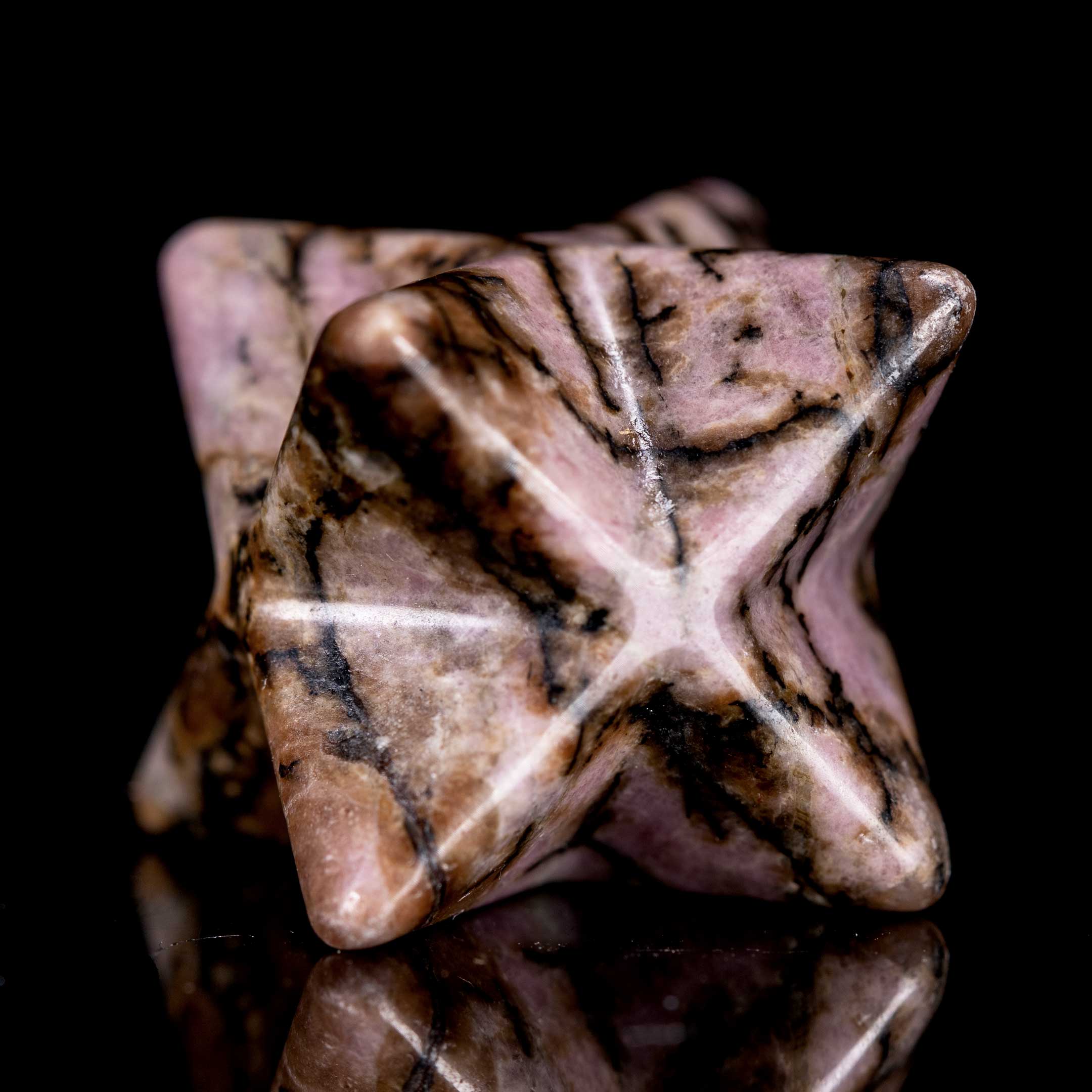 This Rhodonite has been carved and polished into a Merkaba. The Merkaba (meaning light-spirit-body) is the energy sphere in which everything exists. It is the vehicle that carries you to the dimensions of unity and love that exist beyond the mind. Combined with the attributes of Rhodonite makes this an incredible spiritual tool!